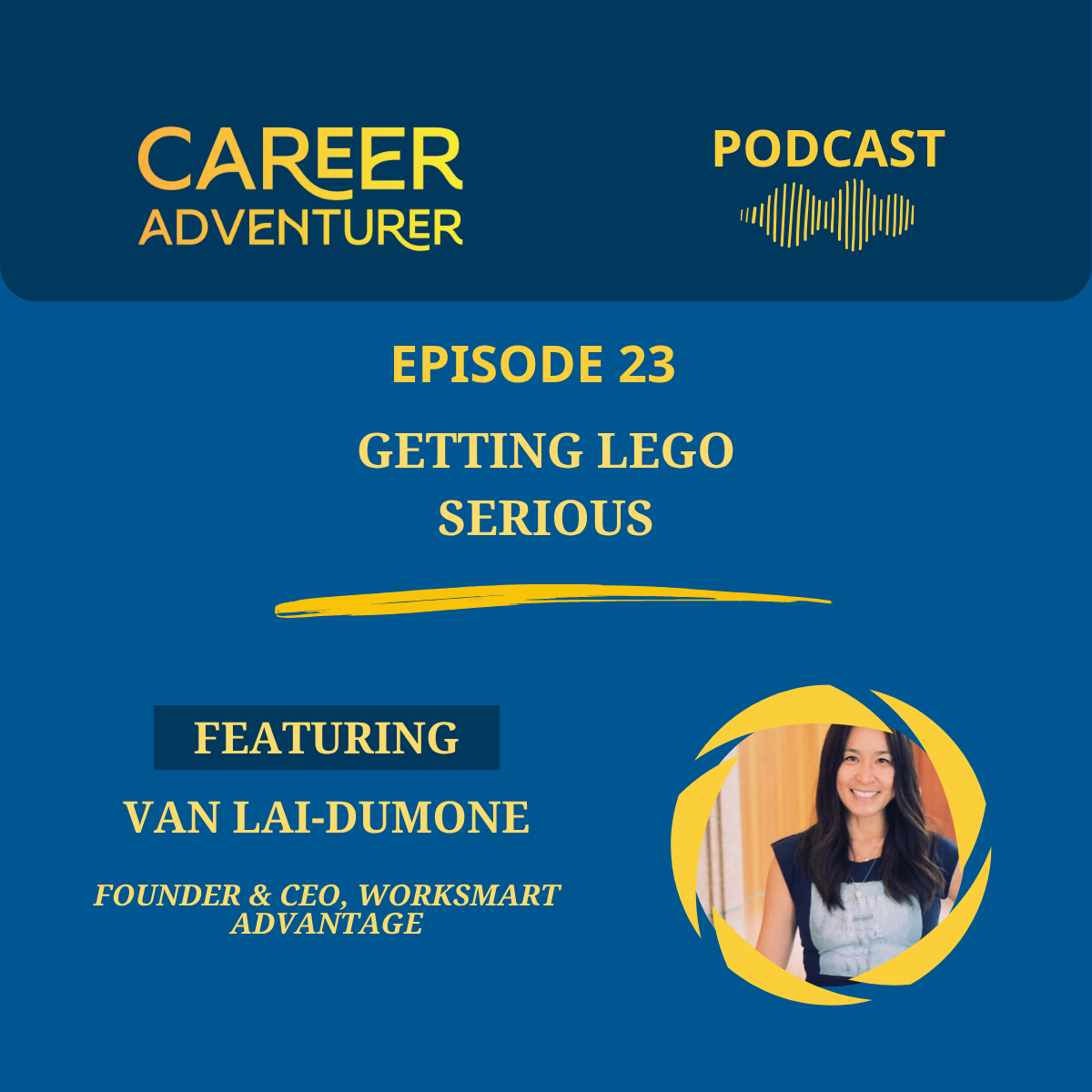 In this episode of the Career Adventurer Podcast, I welcome Van Lai-Dumone, founder and CEO of worksmart Advantage. Van’s diverse background spans roles from a The Dailey Method bar practitioner to leading sales at GlaxoSmithKline. She is a certified Lego Serious Play practitioner, bringing a unique blend of creativity and team development into the corporate environment.