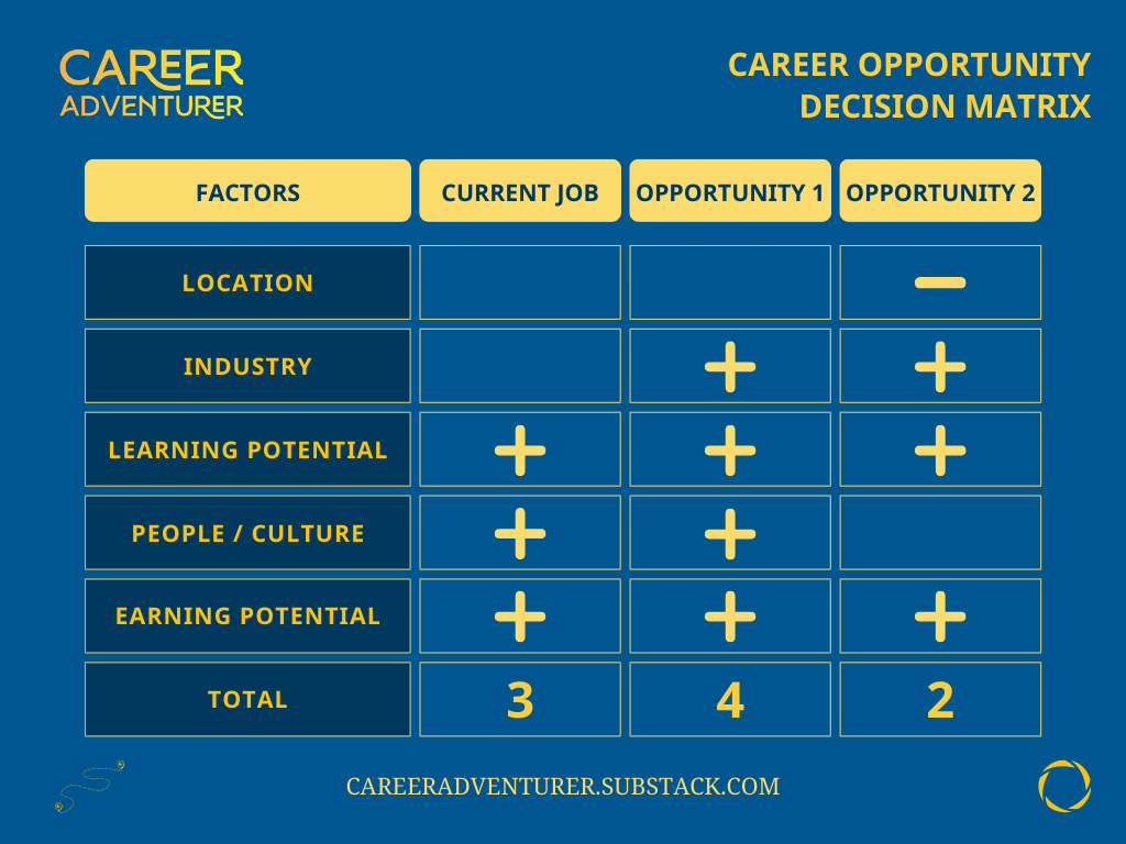 Money matters, but don't overdo it! Evaluate career adventures with a decision matrix.